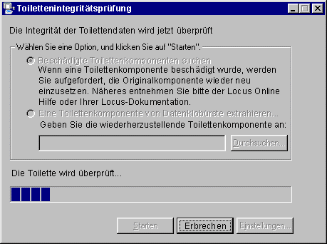 "Heute will ich endlich mal überprüfen, warum die Spülung so langsam geworden ist. Ich suche in den Toiletten-Tools und finde das dazu passende Diagnoseprogramm: die Winzigweich Toilettenintegritätsprüfung...